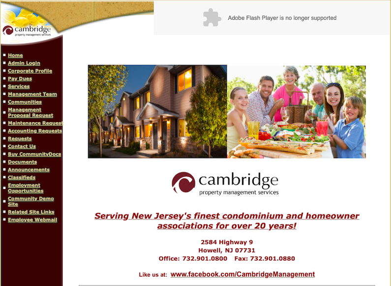 Cambridge Management's website was built in the early-mid '00s - before cell phones even existed. Because of that, the site was not mobile responsive at all. The menu links were all listed on the side bar with no hierarchy, and there was a Flash element in the layout that no longer worked since Flash was discontinued in 2020.